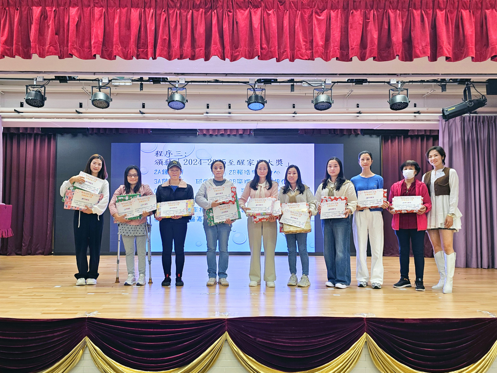 家教會委員於散學禮頒發由家教會贊助的書劵 |