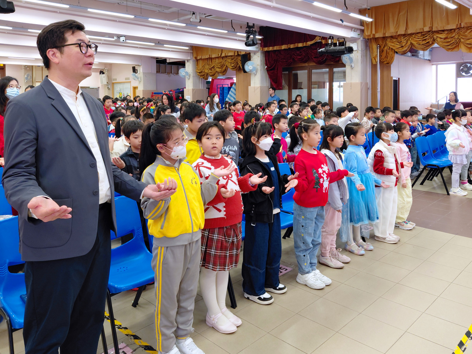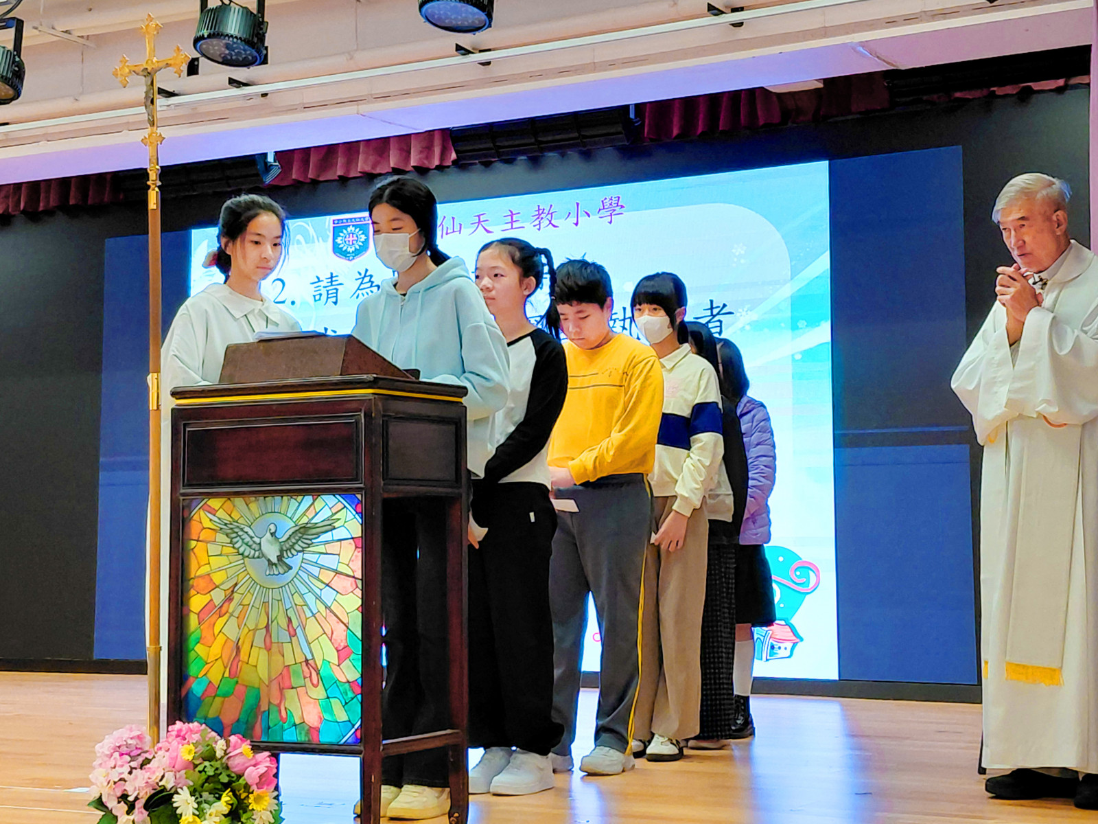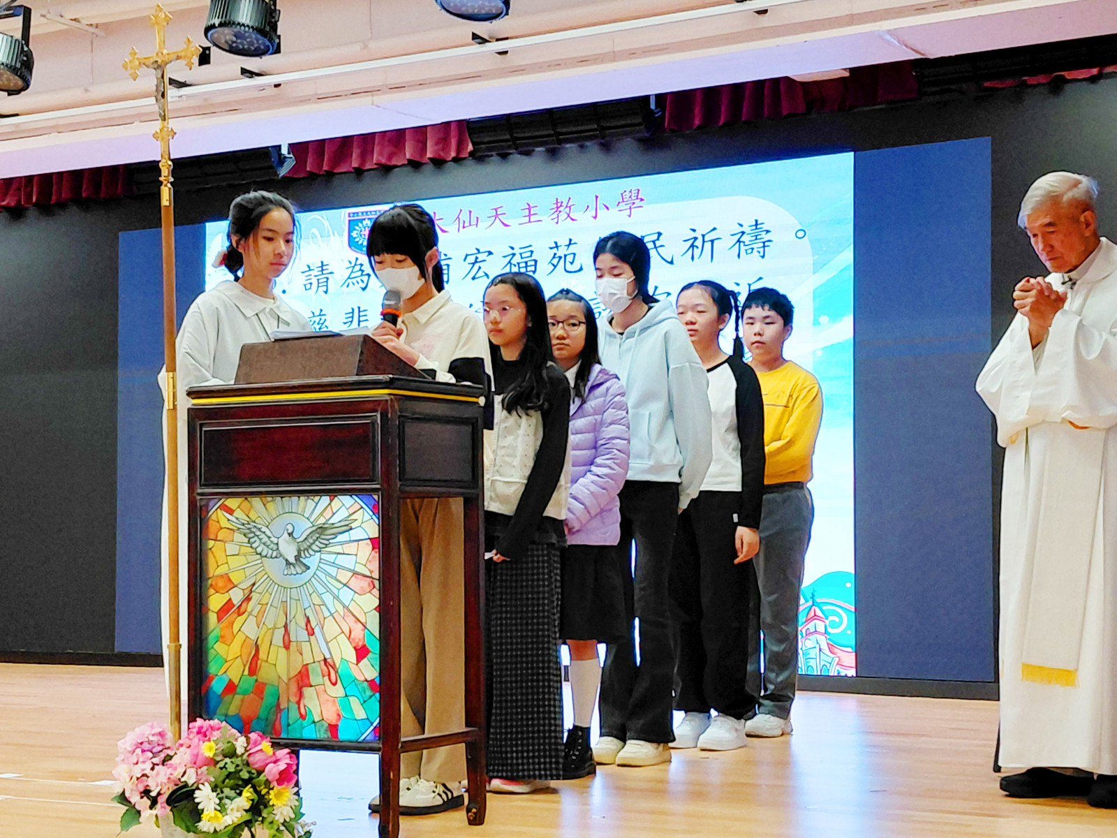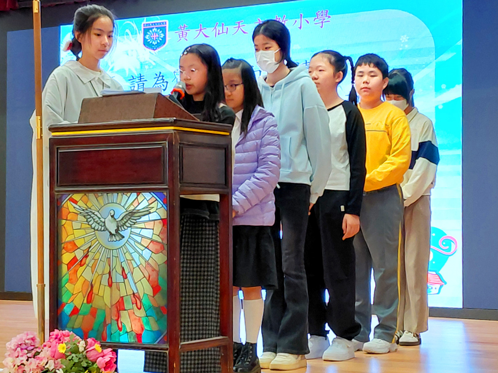 黃大仙天主教小學於十二月十九日,在學校禮堂舉行聖誕讚主祈禱禮,由校監林銘神父主禮,葉鎮鴻校長及全校師生參與。