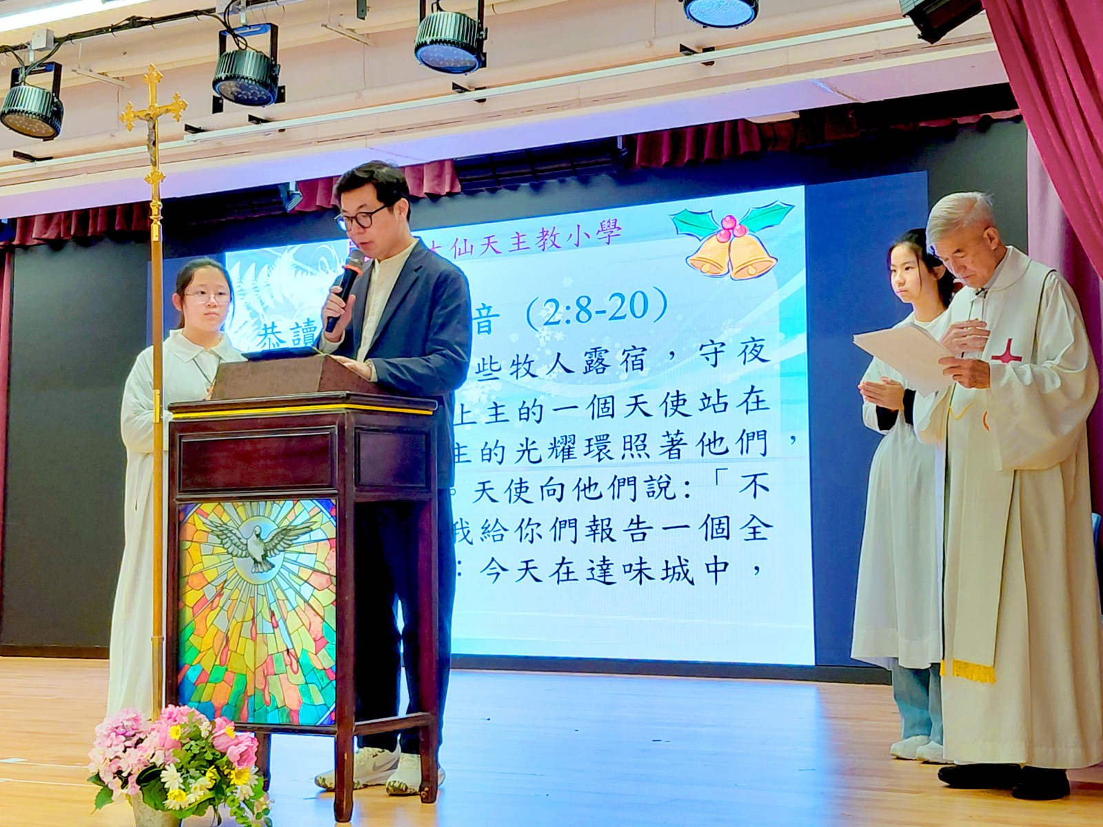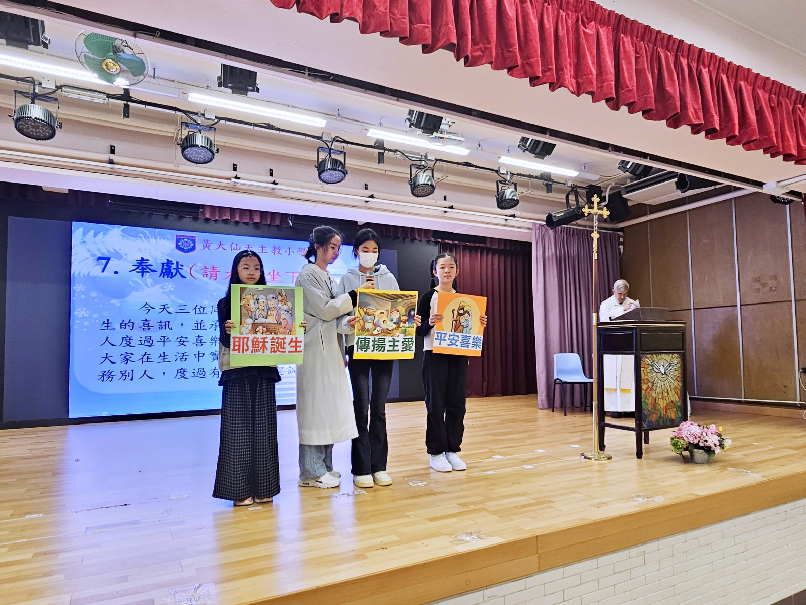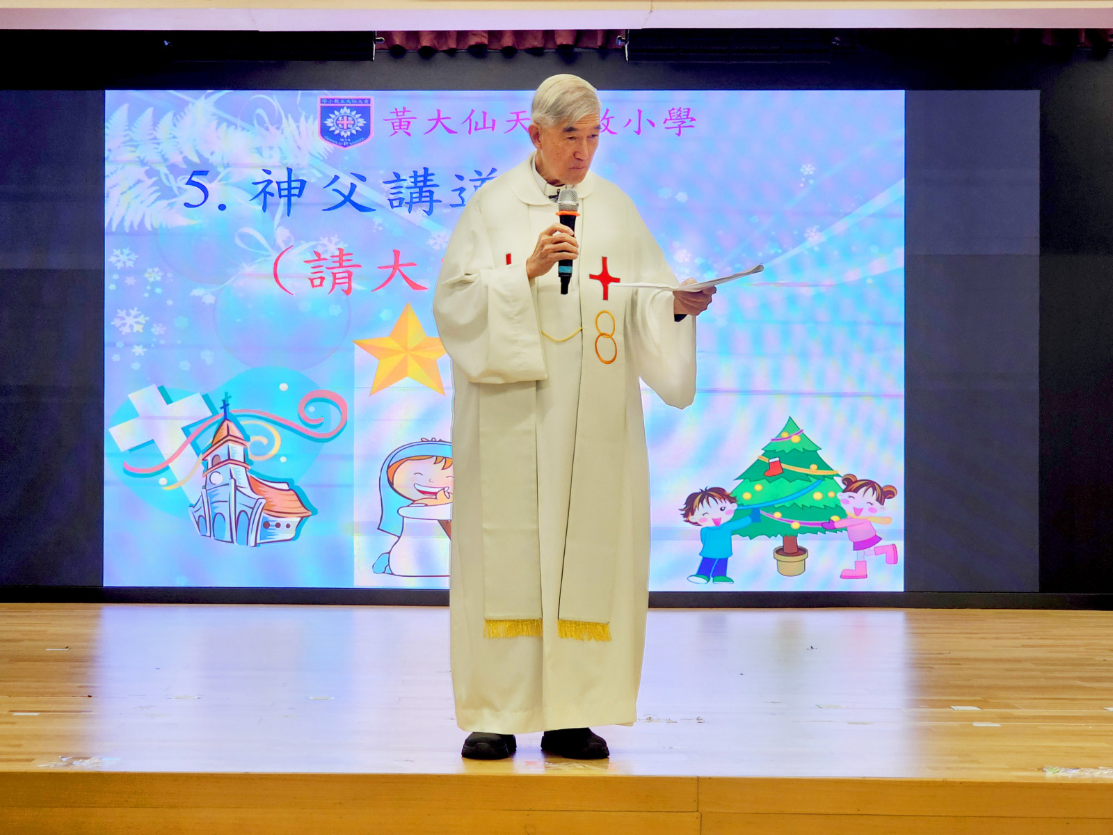 黃大仙天主教小學於十二月十九日,在學校禮堂舉行聖誕讚主祈禱禮,由校監林銘神父主禮,葉鎮鴻校長及全校師生參與。