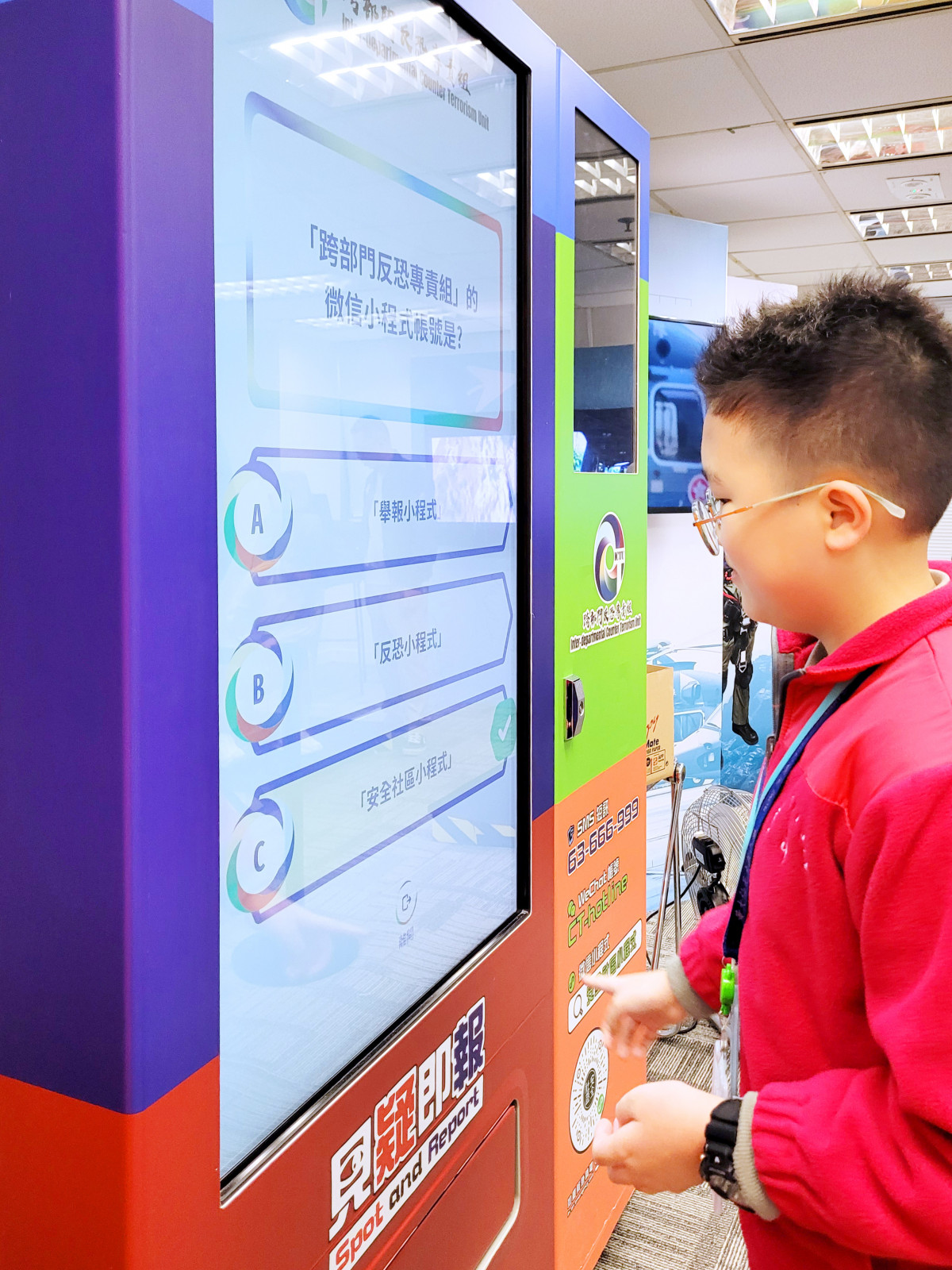 在參觀過程中,領袖生透過虛擬實境、擴增實境、體感互動、互動全息影像裝置及模擬飛行等多元化活動,親身體驗如何化解恐襲風險,並學習保障自身及社區安全的重要性。參加者亦在工作人員的指導下,實地演練「閃避求」及「見疑即報」技巧,掌握在遇到可疑情況或襲擊時的迅速應對方法。